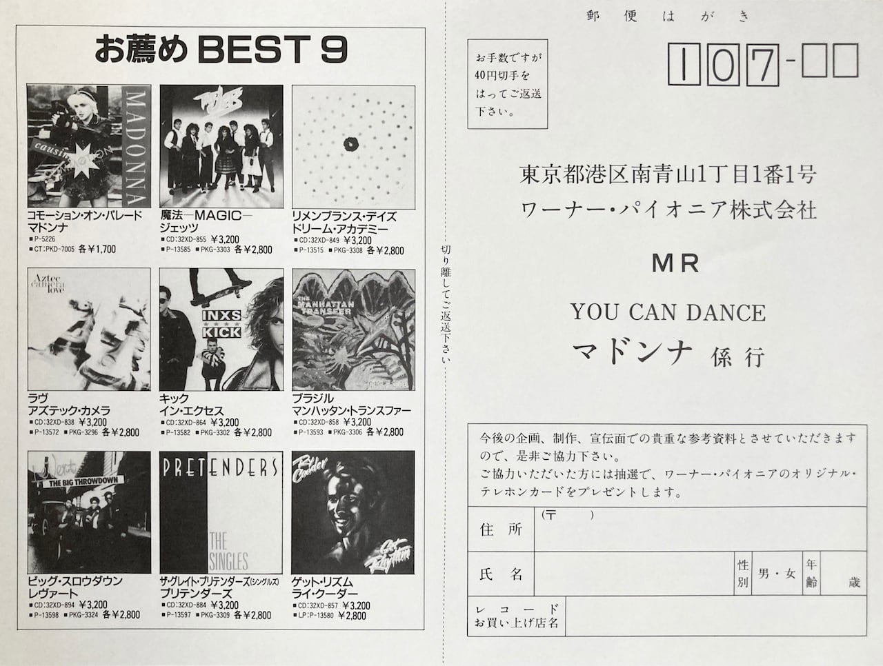 '87年。リミックス・アルバム!代表曲A2 "Holiday"やA3 "Everybody"など7曲を収録。アンケートハガキ付き。