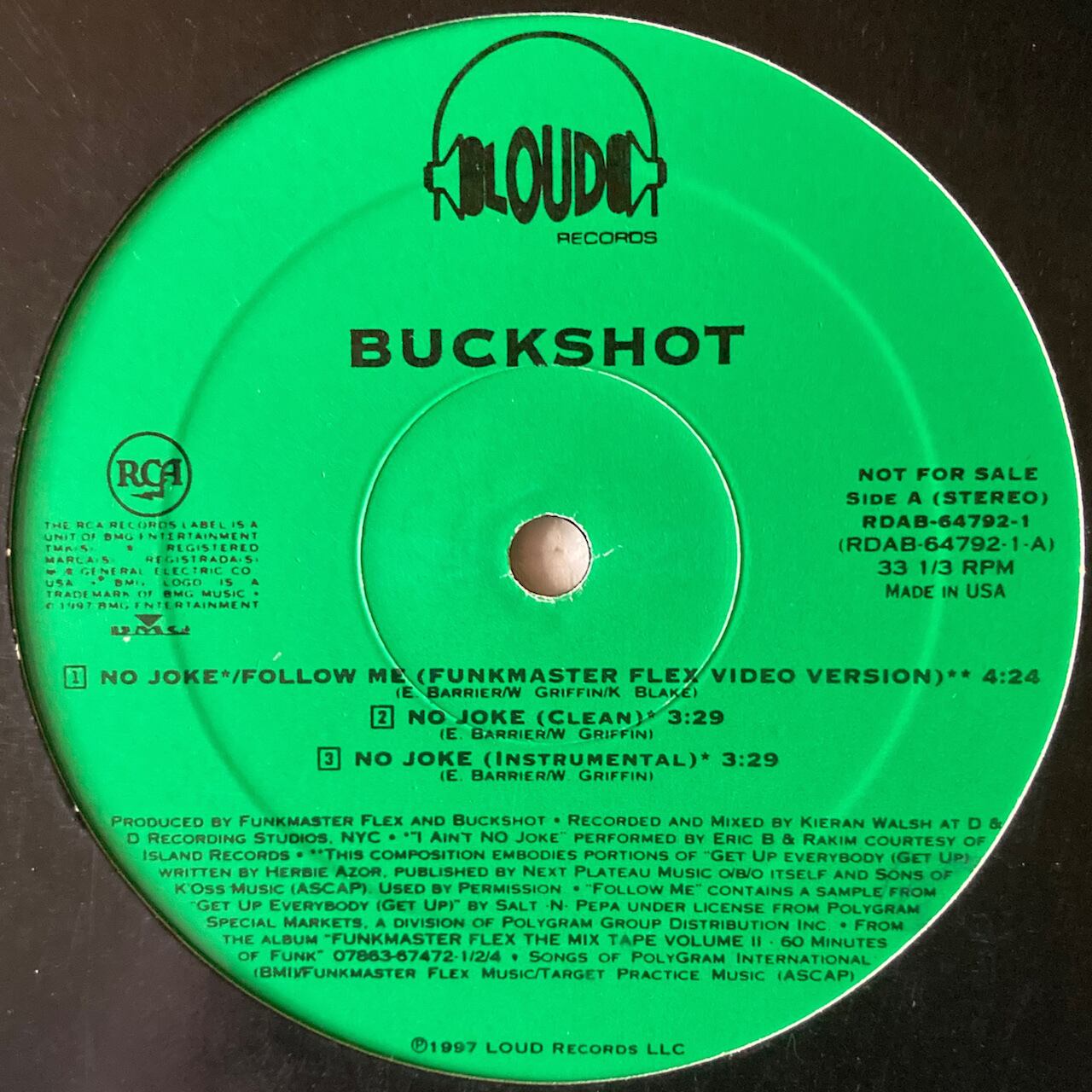 '97年。Duck Down代表Black MoonのフロントMC、Buckshot!...まさかのEric. B & Rakimの名曲 "Ain't No Joke"をカバー!!! B/W "Follow Me"!※スリキズ。
